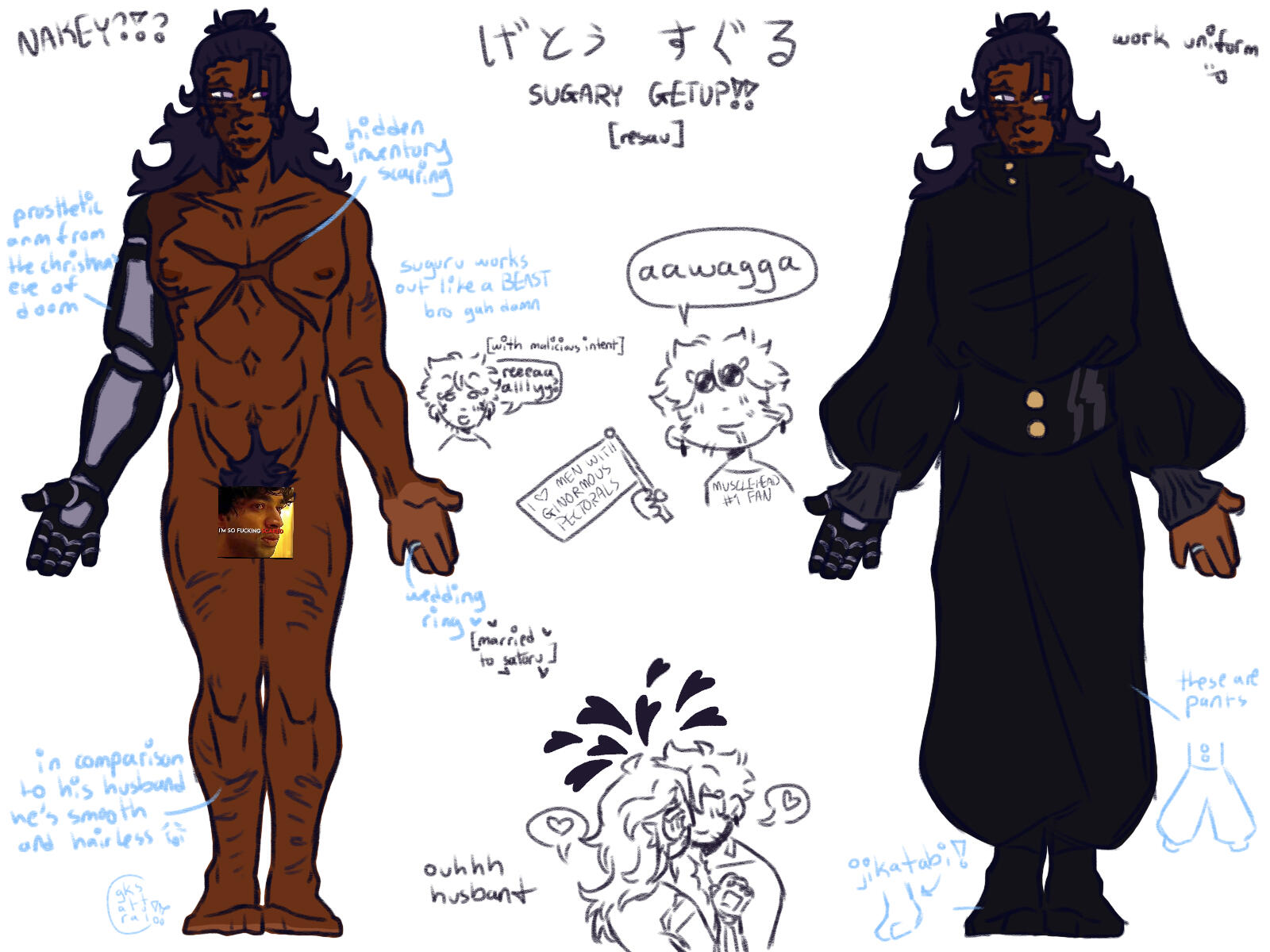most characters featured in resau are HUMAN. this means, well.. what you think it does. however, because JUJUTSU KAISEN consists of both HUMANS and CURSES, they have physical differences!